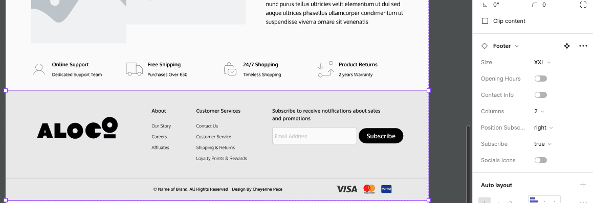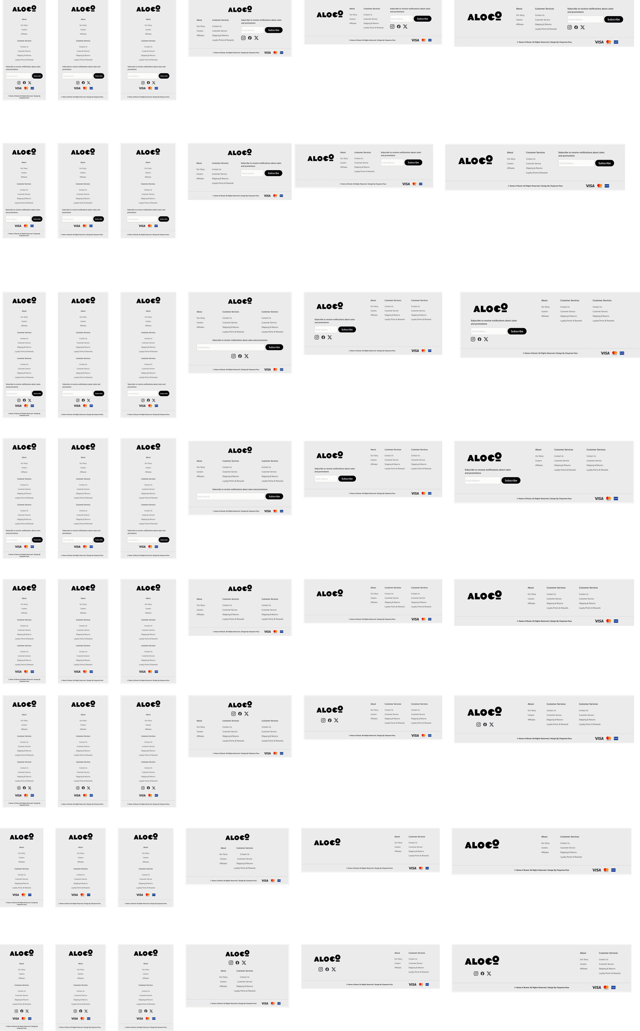 Other components can include more specific information, such as the footer. The footer has a total of 84 variations that one can utilize. Each variation is adaptable; if the user selects a certain variation from the right panel, the entire website will adapt accordingly. Below are a few examples to visually explain better.