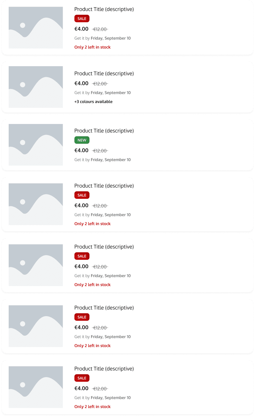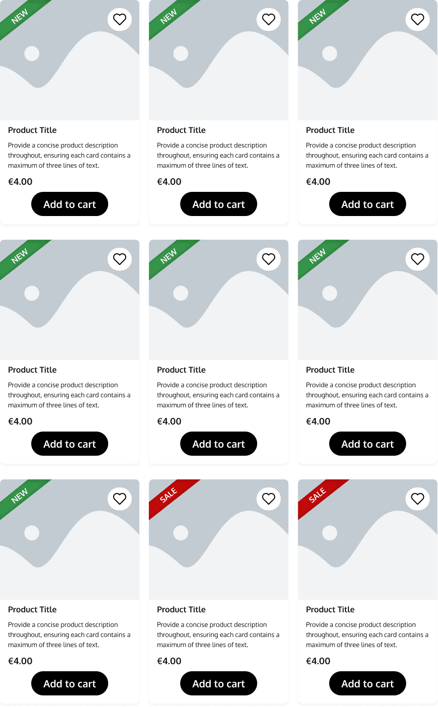 This is a product gallery. These cards can be styled and grouped together to showcase the products in a more interesting way. These types of cards can be used to display new products or items on sale.